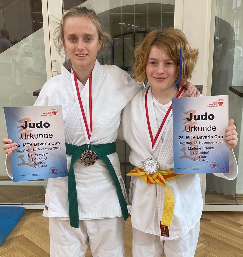 Zwei Kämpferinnen der Judoabteilung im SV Lohhof sind beim Bavaria Cup in München auf die Matte gegangen. Hierbei handelt es sich um ein U14-Sichtungsturnier. Marlene Franke startete in ihrem Pool mit Siegen und entschied auch ihr Halbfinale für sich. Erst im Finale musste sie sich einer stärkeren Gegnerin geschlagen geben und gewann die Silbermedaille. Laura Adami konnte eine Begegnung gewinnen. Nach zwei Niederlagen landete sie in der Endabrechnung auf dem Bronzeplatz.
