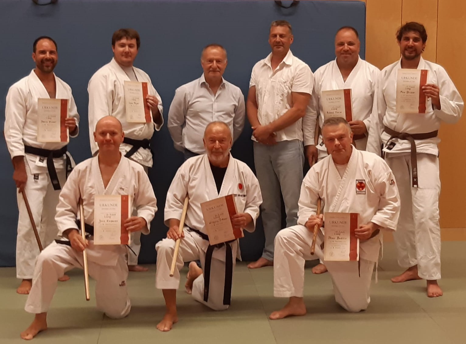 Die Kampfsportabteilung des SV Lohhof hat einen Hanbo-Jutsu-Lehrgang ausgerichtet. Die Teilnehmer übten mit dem Hanbo Abwehrtechniken gegen Angreifer mit und ohne Waffe sowie Weiterführungstechniken. In der Anwendung wurde zudem Kata Schodan trainiert. Alle hatten viel Spaß auf der Matte und gingen mit viel neuem Wissen zurück in ihre Vereine.Neue Gürtel für Ju-Jutsuka