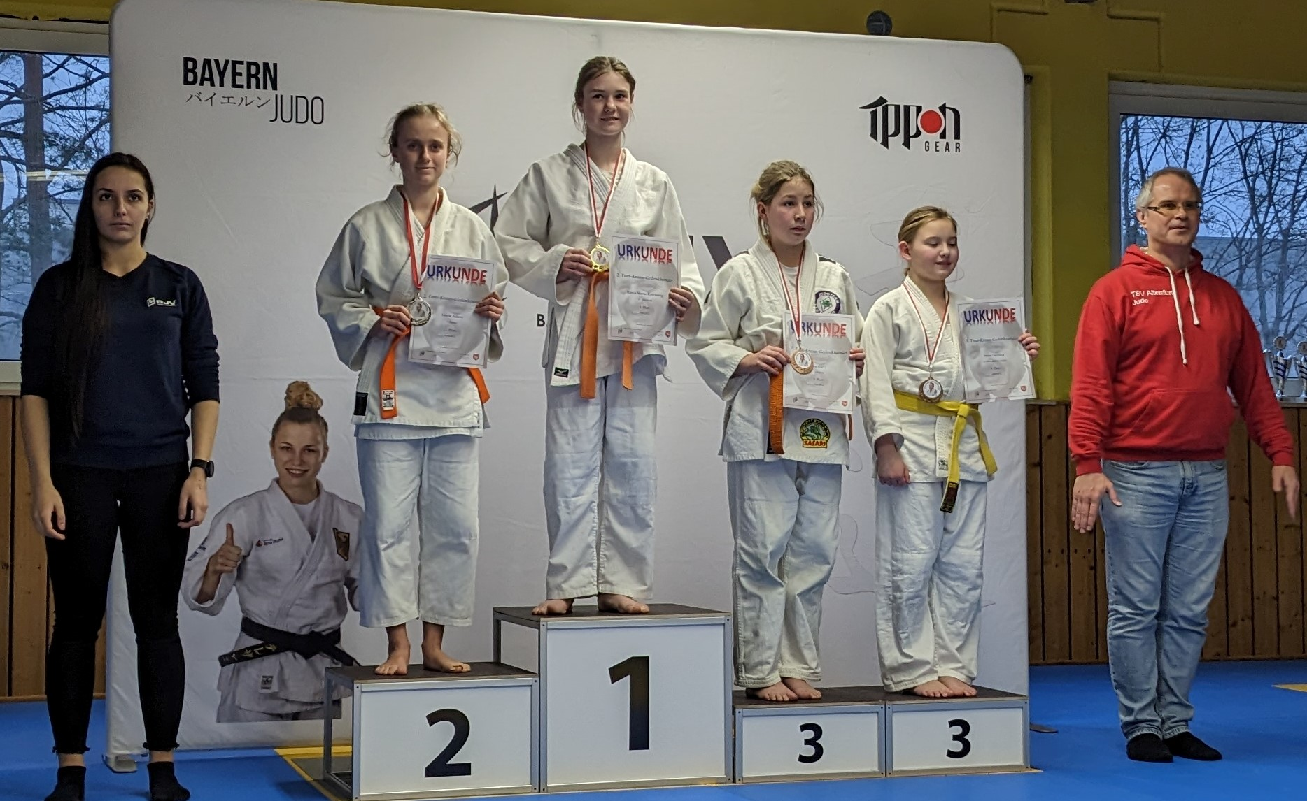 Die Judoka des SV Lohhof sind gut ins neue Jahr gestartet. Bei den offenen oberbayerischen Meisterschaften der U18 gab es zwei Stockerlplätze für die Gracic-Schwestern. Mathilda Gracic wurde bis 48 Kilo Meisterin, trat aber auch bis 52 Kilo an und konnte auch in der höheren Gewichtsklasse einen Kampf gewinnen. Ana Gracic wurde Dritte.Die beiden Jungs hatten mehr zu kämpfen. Pavlos Tsoulfaidis konnte bei seinem ersten Wettkampf einen seiner drei Kämpfe gewinnen und wurde am Ende Fünfter. Constantin Sturm belegte den siebten Platz.