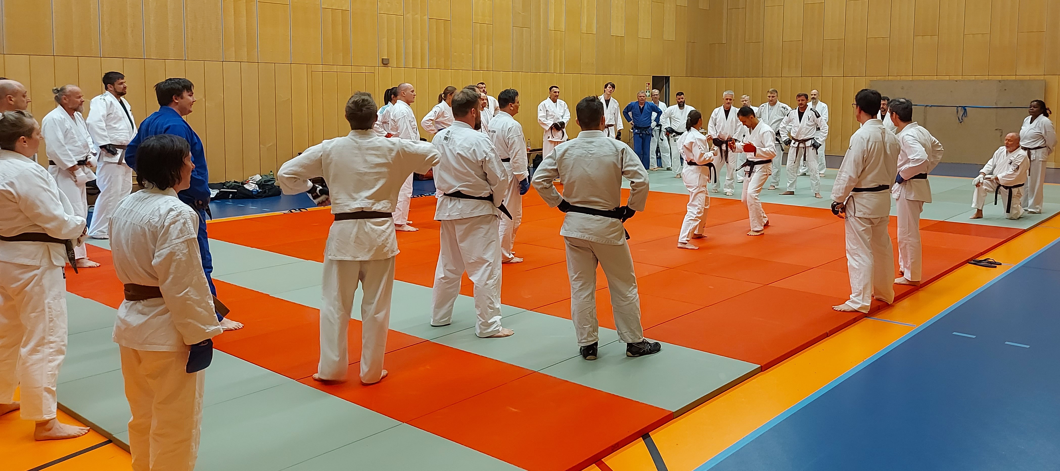 33 ambitionierte Ju-Jutsuka standen beim Dan-Vorbereitungslehrgang beim SV Lohhof auf der Matte. Als Referenten waren der Prüfungsreferent Michael Guttner