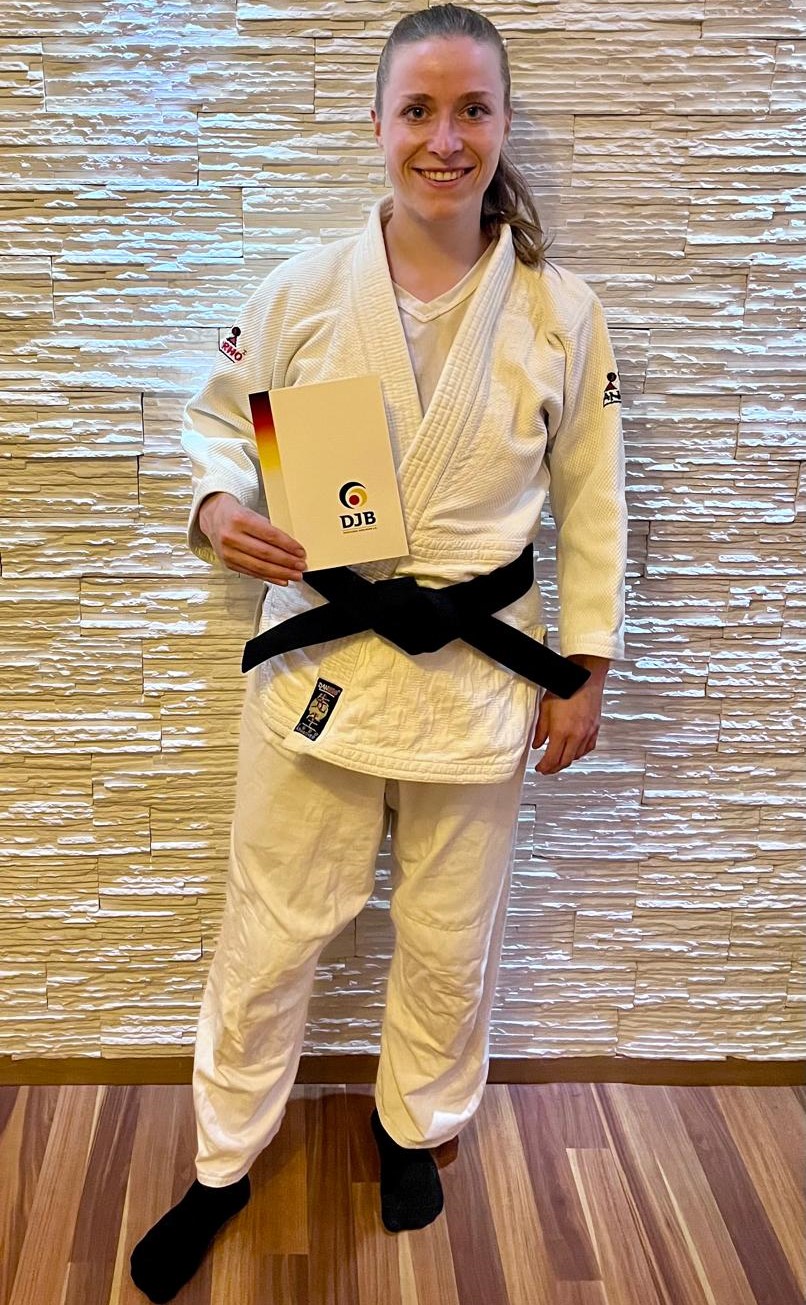 Die Lohhoferin hatte am, neuen trainingsbegleitenden Graduierungskonzept teilgenommen – ein Pilotprojet des Bayerischen Judoverbandes. Einmal in der Woche fuhr sie zum MTV München, um vor den Augen der Prüfer die einzelnen Bestandteile wie Stand- und Bodentechniken, Kata und mehr zu üben und dann auch vorzuzeigen. Inzwischen hat sie alle Teilbereiche bestanden und darf ab sofort den schwarzen Gürtel tragen.