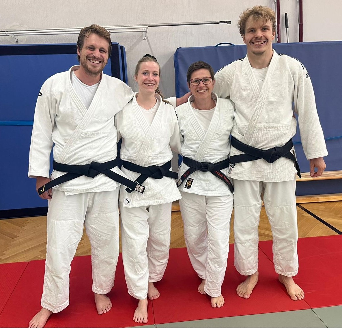 Kurz vor den Sommerferien haben vier Judoka aus der Kampfsportabteilung des SV Lohhof ihren 2. Dan abgelegt. David Schnöbel (v.l.), Caroline Sprater, AntoniaOswald und Fabian Filbig haben sich im begleiteten Graduierungstraining vorbereitet und den Prüfern um Jochen Haucke und Hamid Burg alle nötigen Techniken präsentiert. Am Ende stand die erfolgreiche Graduierung.