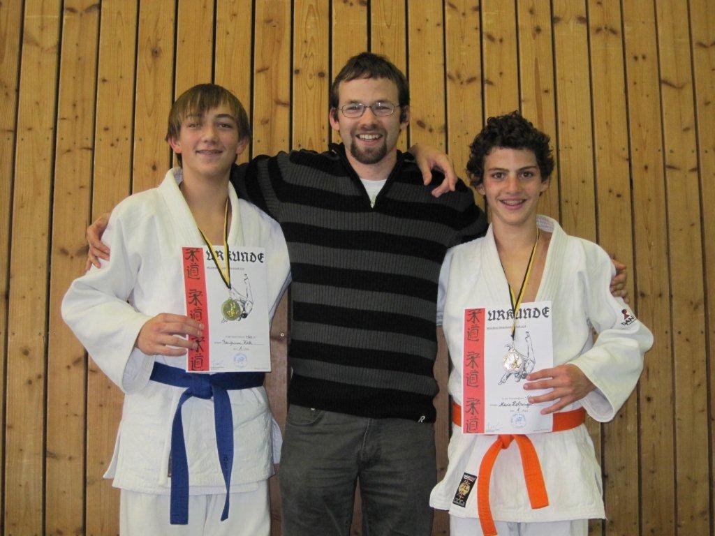 Ebenfalls zum ersten Mal dabei waren die frischgebackenen Gelbgurte Luka Lorch und Maxi Wagner. Sie kämpften in einer Gewichtsklasse wacker, schafften je einen Sieg, ein Unentschieden und eine Niederlage. Das vereinsinterne Duell entschied Maxi Wagner für sich. Damit sicherte er sich den Vizemeistertitel, Luka Lorch wurde Dritter. Den gleichen Platz erreichte auch Timm Dauth. Weniger Glück hatten Michel Pittas und Philipp Staudigl, die das Turnier trotz viel Kampfgeist als Fünfte beendeten.