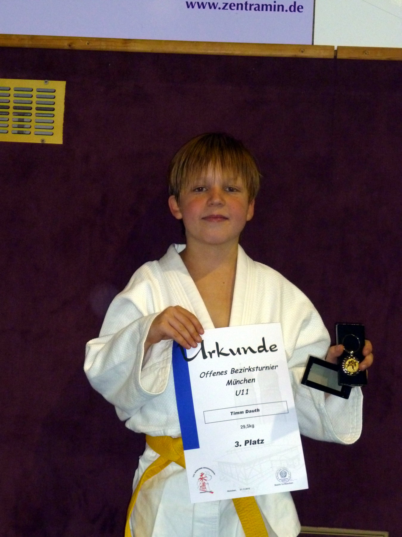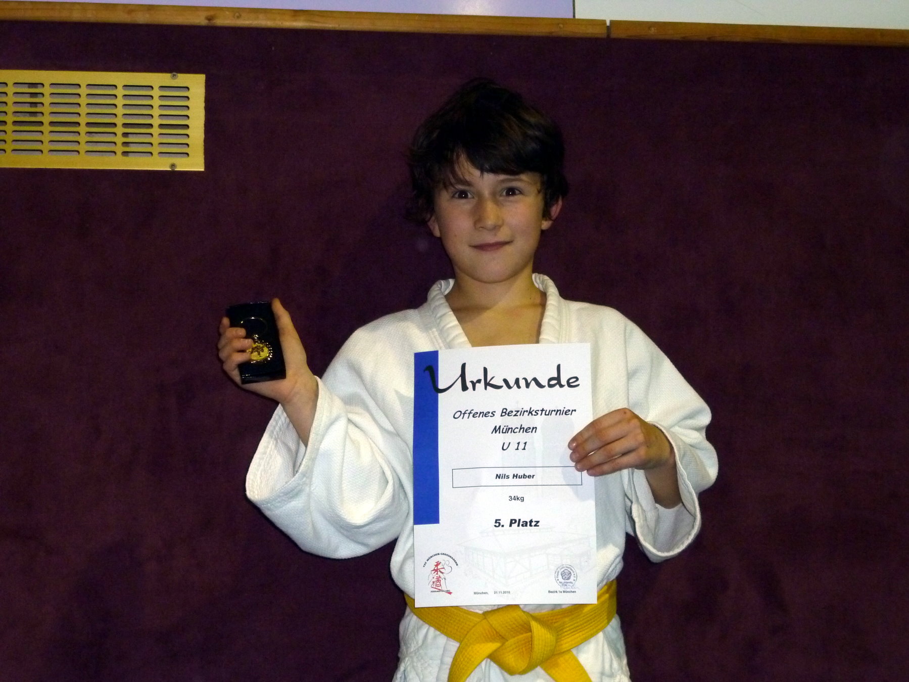 Bei den Buben warf Timm Dauth zunächst Elias Wolf vom TSV Großhadern mit einer Fußtechnik auf die Matte. Dann musste er sich jedoch dem Großhaderner Eddie Groh und Moritz Lenhard vom JV Ammerland Münsing zweimal geschlagen geben und wurde Dritter. Nils Huber bezahlte bei seinem ersten richtigen Turnier noch Lehrgeld. Er verlor zwar alle Kämpfe, zeigte aber viel Einsatz und nimmt als Fünfter Erfahrung für das nächste Turnier mit.