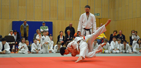 Abteilungsleiter Peter Fuchs dankte Goldbrunner für seinen Einsatz. Der Geehrte freute sich über die Auszeichnung. Es sei das schönste, wenn die Kinder Spaß hätten, sagte er. Dann ging er zurück zum Computer, um die Wettkampflisten und Urkunden auszudrucken. Schließlich warteten knapp 50 Mädchen und Buben auf ihre Kämpfe. Die Weißgurte durften beim Sumo-Ringen ihre Kräfte messen. Die Großen zeigten bei den spannenden Kämpfen, wie viel sie im vergangenen Jahr gelernt hatten.